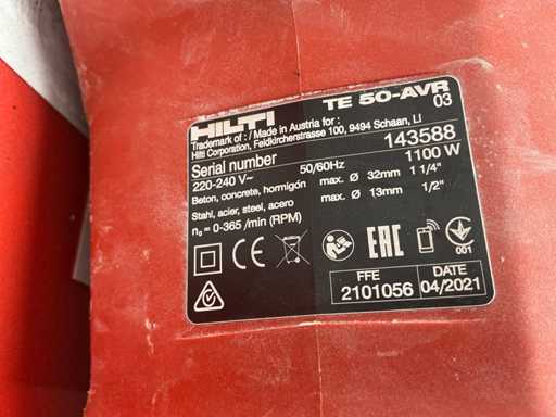 2021 Hilti TE 50-AVR Rotary Hammer 52mm SDS-max