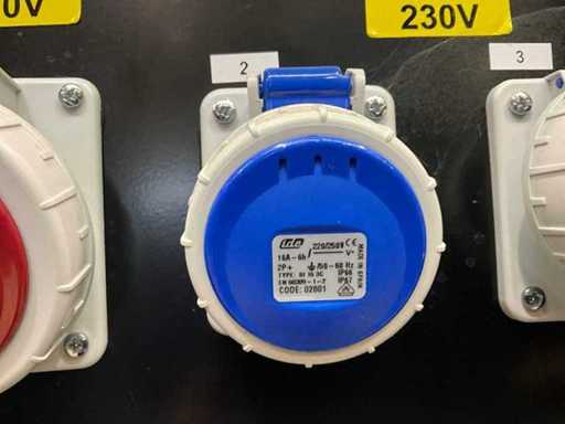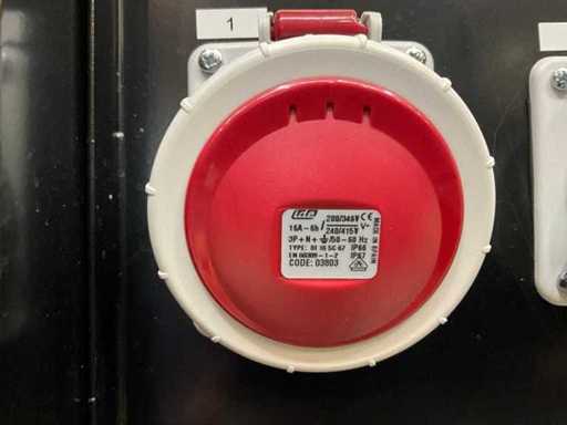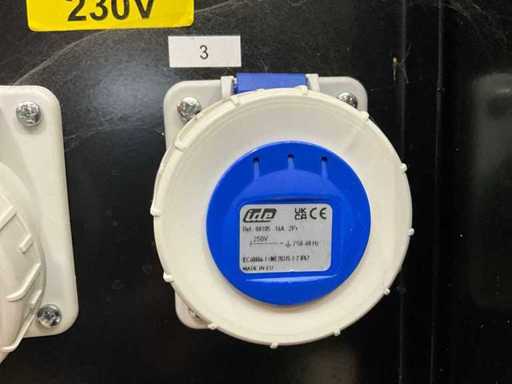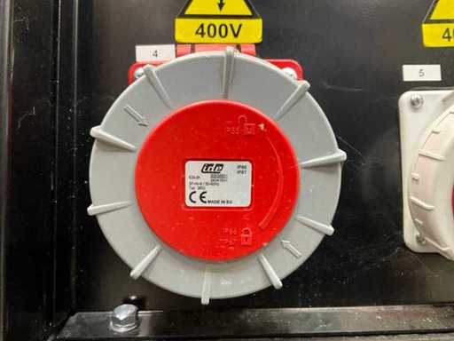 AC output: 1 x 400V 32A, 1 x 400V 16A, 1 x Schuko 16A, 1 x Schuko 230V;