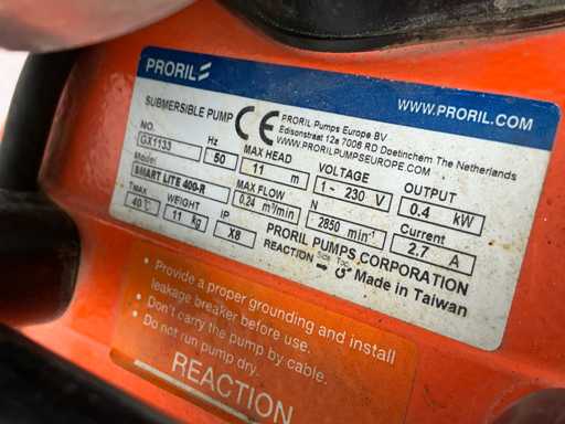 2022 Proril Smart Lite 400 Submersible Construction Pump 18m³