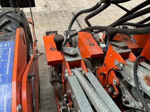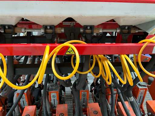 equipped with monitor monitoring, 180 cm track, 150 cm bed, 6 rows 250 mm, wheels 6.00-16, vacuum and pressure gauges, hydraulically driven 540 rpm fan, storage legs, road lighting, 2 ltr seed trays, clod remover 150 mm, double running wheel FZP80, 6x camera and 10" monitor system, Stocks granulate bucket 60 Ltr each, various sowing discs, documentation