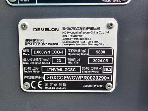 2024 Develon DX60WN ECO-1 Wheeled Excavator