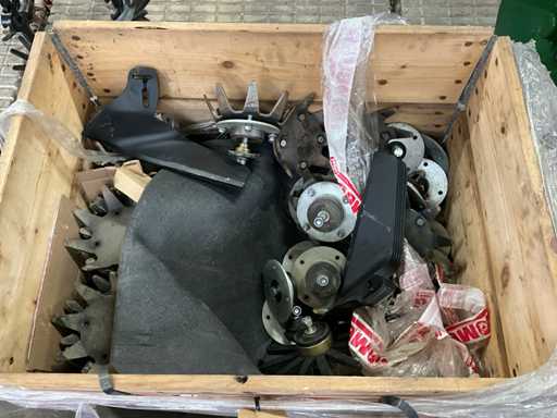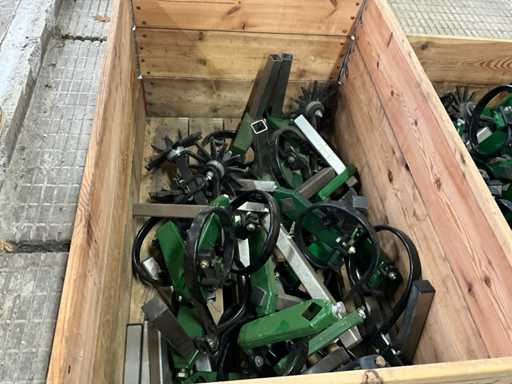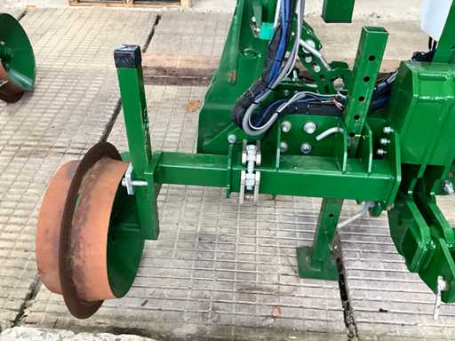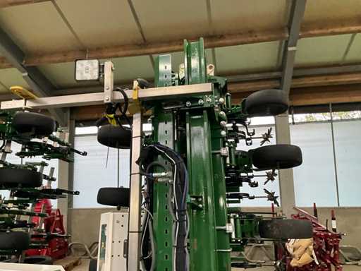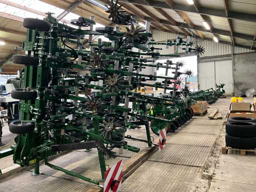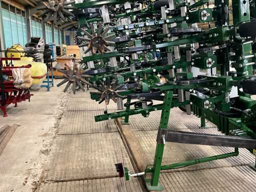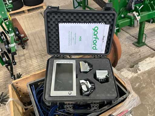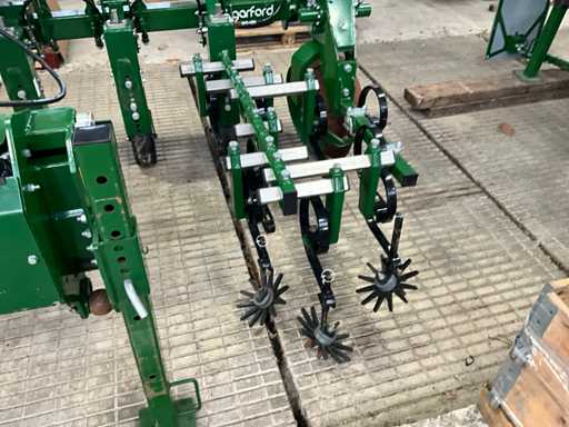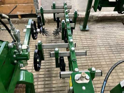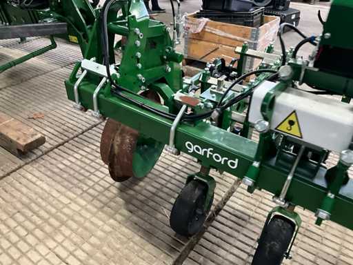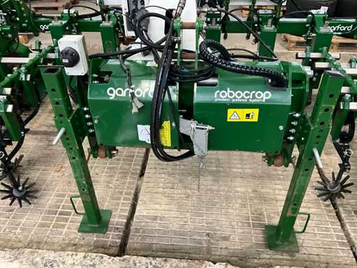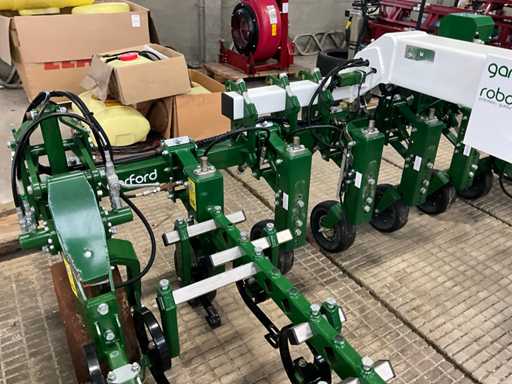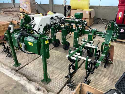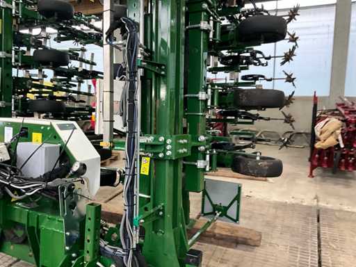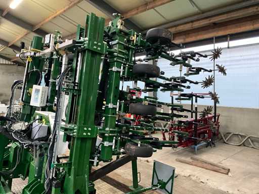 Consisting of 7 row front hoe at 41.5 cm, hydraulic pressure adjustment of elements, wheel steering/side-shift steering for line guidance, rotating finger weeders, camera control, corner hoes, 14 row rear hoe at 41.5 cm, camera control, side-shift steering for line guidance, rotating finger weeders, hydraulically folding, stabilization wheels, work lighting on the cameras, hydraulic pressure setting on elements, road lighting, including 3 pallets of spare parts