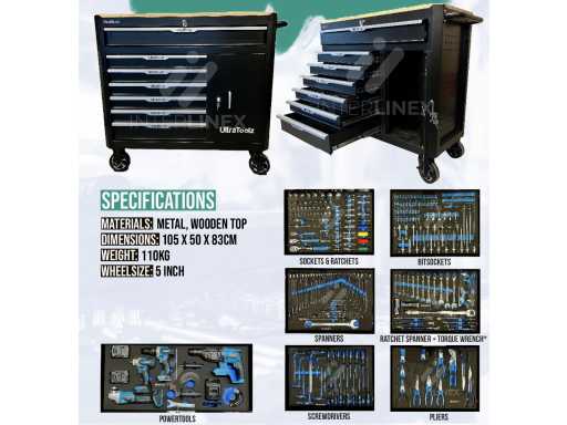 2024 UltraToolz 7/7 XXXL + powertoolz Tool trolley filled