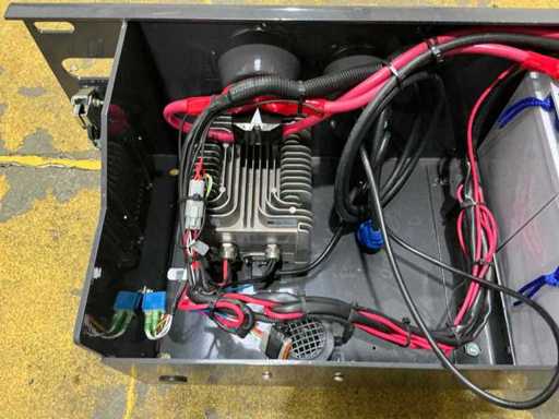 Platform floor height 8000 mm; extendable platform size approx. 3150x750 mm; internal battery charger 230 Volt; 230 Volt power connection platform; cage control; Unused machine