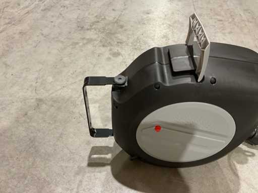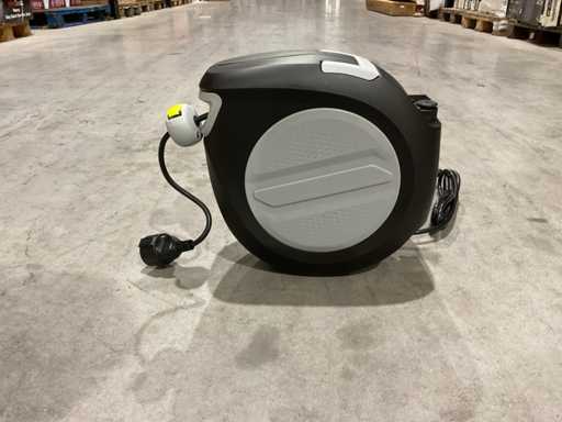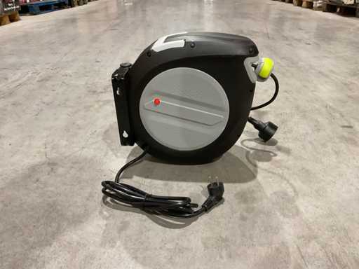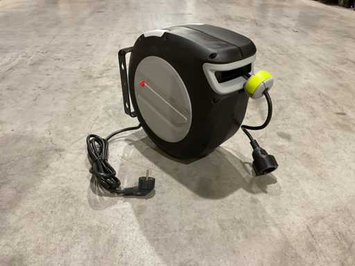 Make power supply easy and safe with this automatic power reel, with a cable length of 20 meters. Thanks to the automatic rewind mechanism, the cable retracts effortlessly, preventing knots and messes. The snap lock keeps the cable firmly in place, while the built-in thermal protection prevents overheating. For added convenience, the reel is equipped with a metal hook and a 180° rotatable mounting bracket, so you can easily attach it to the wall or ceiling. Unused in box.