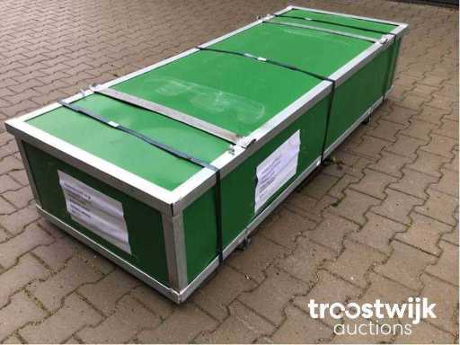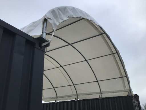 Equipped with PVC tarpaulin 610 gr; color white; with closed back wall; single truss; Galvanized steel frame arches 45x1.5 mm Purlin 32x1.2 mm; space between arches 1.5 mtr; manual available; For more info, see downloads; © unused; Transport dimensions metal crate: 1950x750x580 mm (lxwxh)