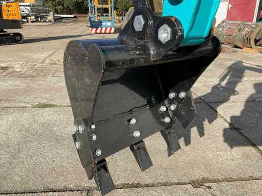 Equipped with extra hydraulic function, sliding board, excavator bucket with removable teeth. Unused