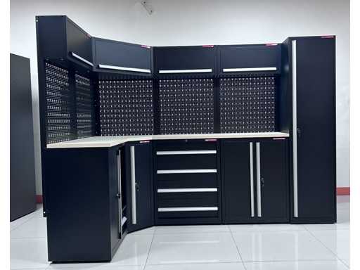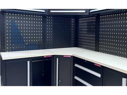 Powder coated; 30 mm wooden worktop; color black; Unused in boxes (transport size 1.9 m3)