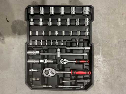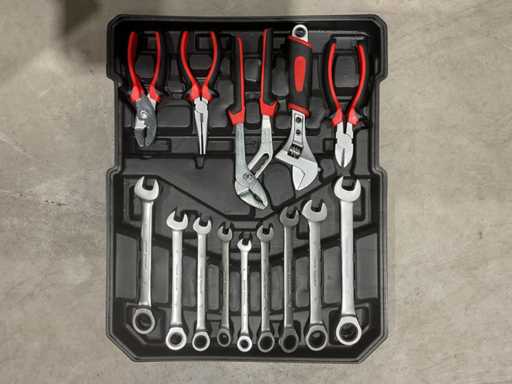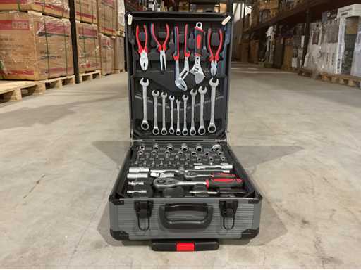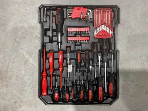 Equipped with a 399-piece tool trolley; filled with various Chrome vanadium tools; Unused in box (transport dimensions 40x25x55 cm)