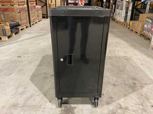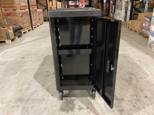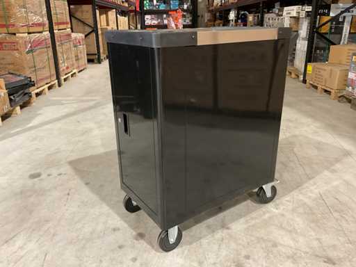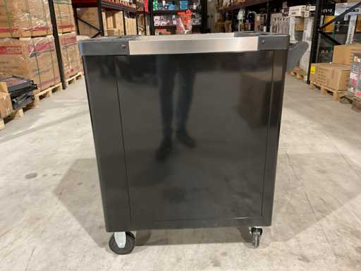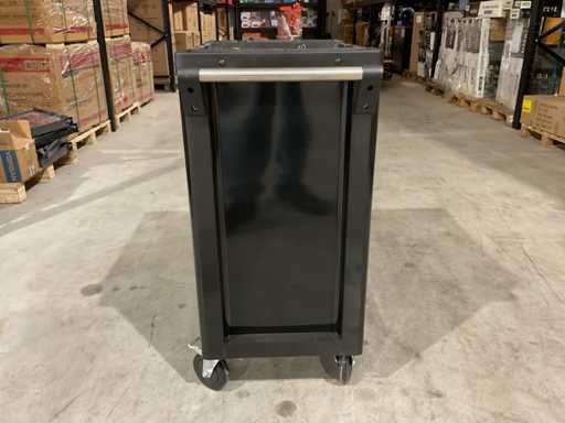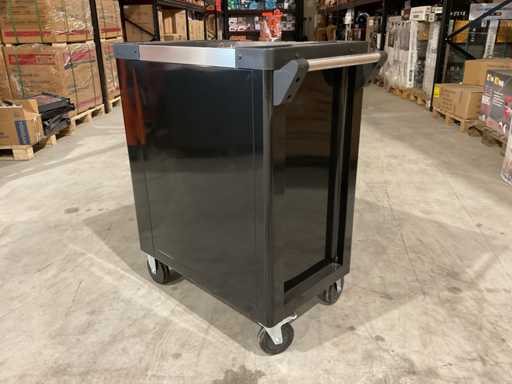 Equipped with 7 drawers, 7 of which are filled with tools; professional chrome-vanadium tools; heavy duty tool trolley; sturdy worktop; 4 wheels; sturdy handle; Unused in box (transport dimensions 80x50x85 cm)