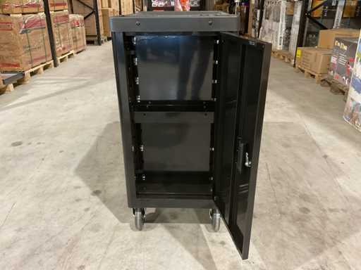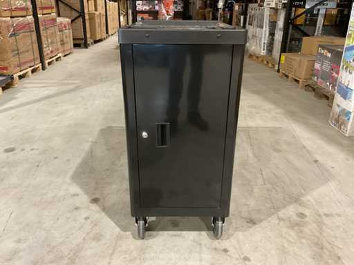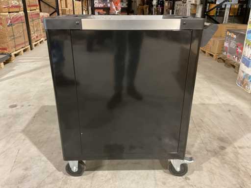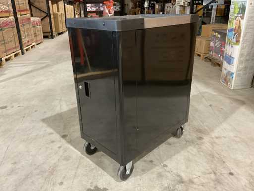 Equipped with 7 drawers, 7 of which are filled with tools; professional chrome-vanadium tools; heavy duty tool trolley; sturdy worktop; 4 wheels; sturdy handle; Unused in box (transport dimensions 80x50x85 cm)