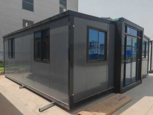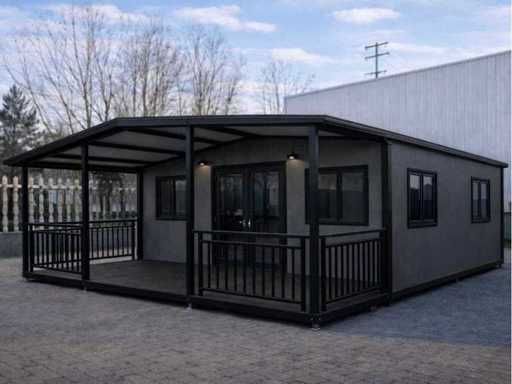 2026 Rhino Houses 36,5 m2 Black 2 bedrooms, bathroom and kitchen Mobile living unit / Tiny house with awning / balcony