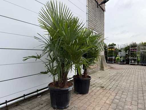 2x Chinese fan palm triple stem - Trachycarpus Fortunei - height approx. 180 cm