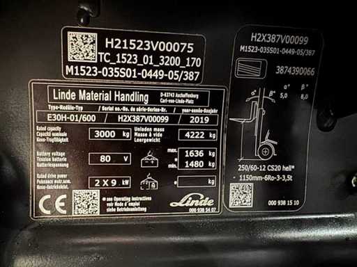 37/2021 Service + UVV 04/2027 Linde E30/600H EVO 3.000kg 3.+4. Valve Fork Adjuster Electric Forklift Forklift 9.514 hours