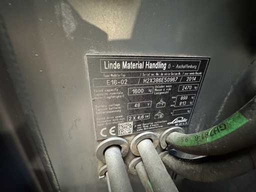 42/2019 Linde E16 1.600kg Triplex 462cm Free Lift Electric Forklift