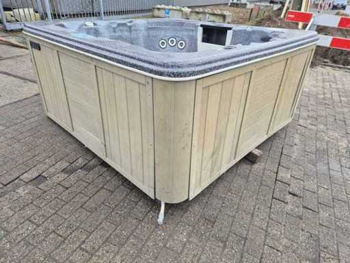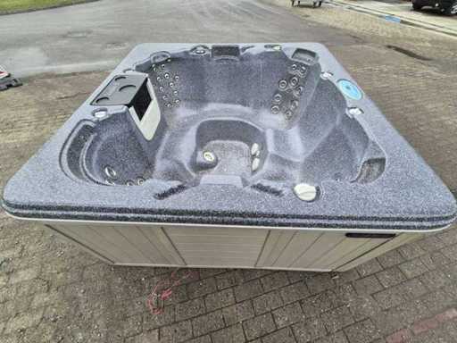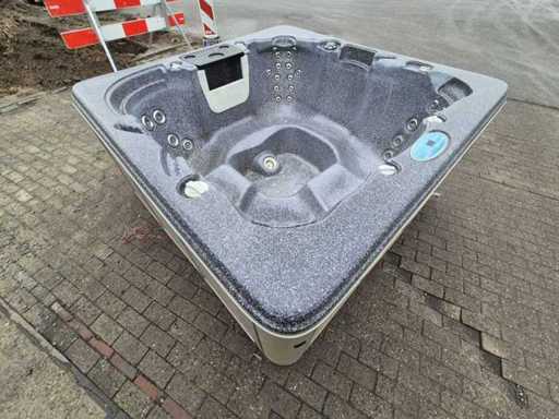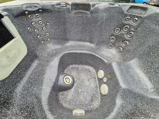 Equipped with waterfall; speakers; lighting; 4 seats; 1 berth; pillows; plastic casing; automatic filtration system; Not tested for functioning (Margin, no VAT)