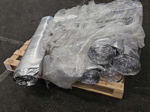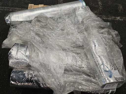 Batch of silver foil subfloor, approx. 50 m2, remaining batch of subfloors, contains various lengths, sound recuperating, vapor tight, with overlap 100 mm, 2 mm thickness, slightly leveling, suitable for laminate and parquet, 1 pallet of 50 m2
