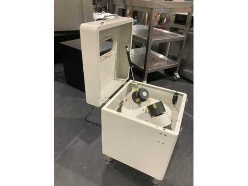 Mixer for homogenizing solder paste for electronic applications (PCB assembly). Allows for uniform mixing before screen printing to ensure consistent dough deposit quality.