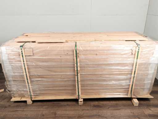 Easy to lay due to tongue and groove system, packs contain short and long parts of planks, suitable for all types of floor and cooling heaters, quality parquet floor, top layer is made of oak wood, untreated, thickness 19 mm, top layer 5 mm, 54 packs of 1.328 m2