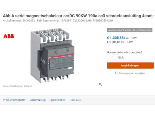 ABB 1SFL487102R1300 A Series Contactor 90 kW 190A