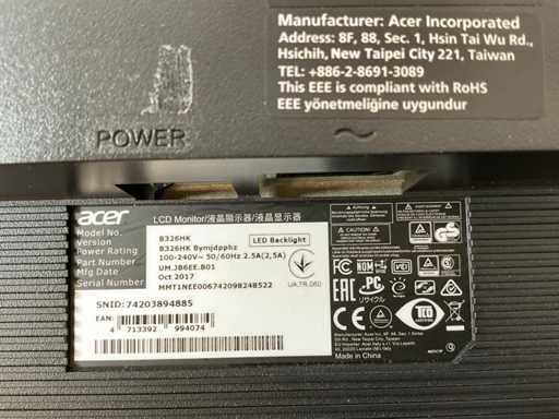Acer (B326HK) 32", 3840x2160 (UHD) IPS Monitor