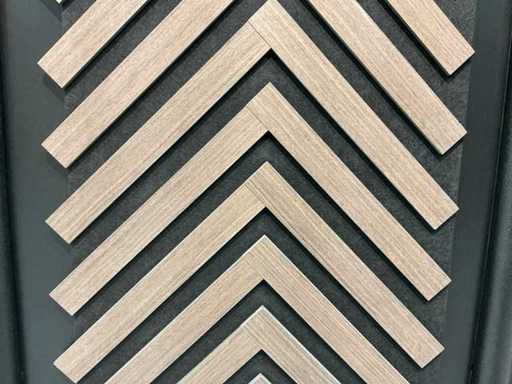 Acoustic panels are also called slatted walls or aku panels. These wooden panels are perfect for people who want to bring nature into their homes and love decoration! These wall panels have a veneer layer of real wood, which is glued on top of the MDF. This is a thin layer that has been cut with care. You can see and feel this well, because of the structure this slatted wall looks real! These types of wood panels are popular in many different interiors, from minimalist to classic home styles. Acoustic An AkuPanel has sound-absorbing properties, which means that there are better acoustics in the house and less noise pollution. Sound-absorbing wall panels on your wall or ceiling make reverberation a thing of the past. The sound is not reflected in the room, but absorbed and muffled. Product size: 270x51x1.8cm Suitable for: Indoor