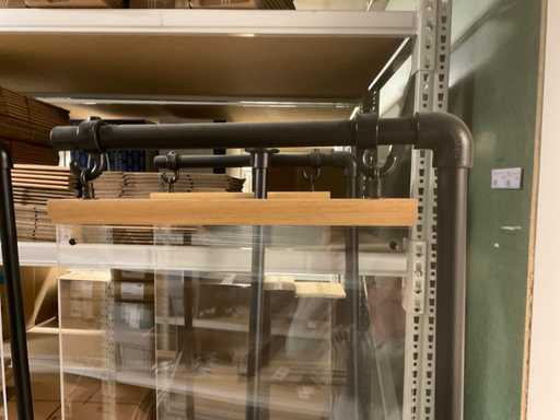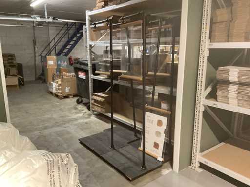 4 advertising columns on wooden base approx. 75x58 cm with top holder