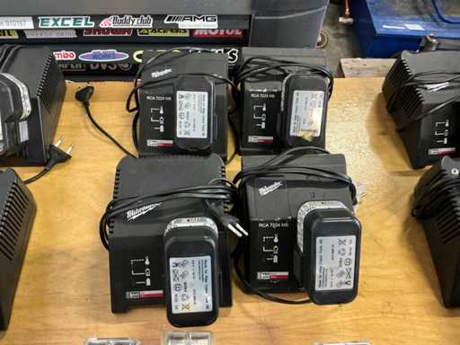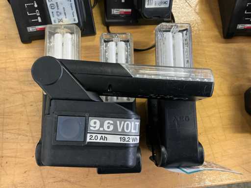 4 lamps; 8 batteries all 9.6 volts ; 4 charging stations