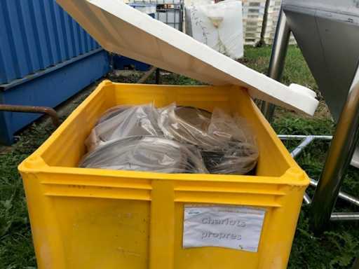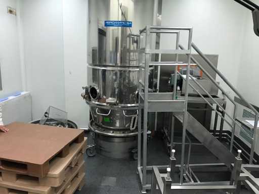 Refurbished in 2006 (electricity) and 2014 (automation) Tank: volume 550 litres, tank bottom area 0.77 m², overpressure resistance 2 bar Filter formwork: 2 bar overpressure resistance Coarse dust filter, surface area 38 m² (ASHRAE separation degree 85%) Outgoing air filter surface 21 m² Pneumatic and electrical cabinets PLC: Johnson Controls FEC2611 4 mobile tanks Dust collector: present ("old generation") AHU: not present Extraction: piping present, but no fan Explosion Valve: Not Present Incoterm: EXW Ref. 4809