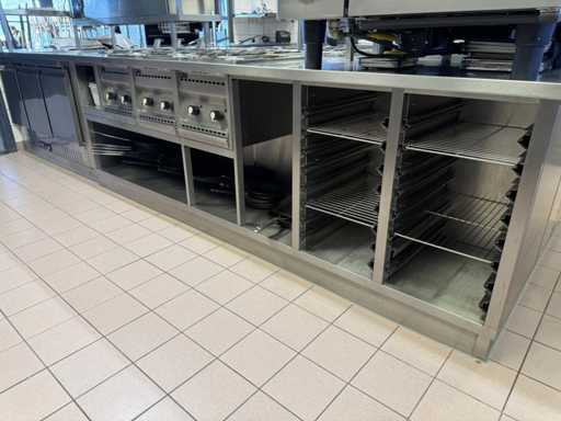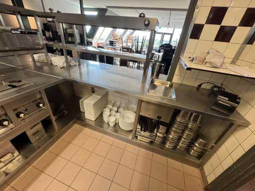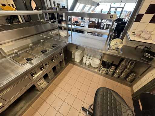 Equipped with 10 gas burners, 3 electric fryers (incl. 1x new heating element) and Etagere.