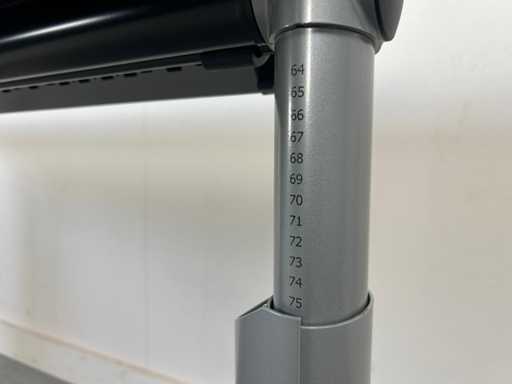 Sturdy desk / work table with white worktop and a stable T-leg base in gray version. The table is height-adjustable (manual), ideal for office, studio, meeting or project space. Sleek appearance and easy to combine with any interior.