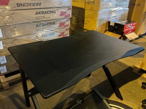 Consisting of a desk table equipped with a headphone holder, a cable duct and a carbon fiber look, a footrest, an xl mouse pad, a rug of Ø100cm and an adjustable gaming chair.