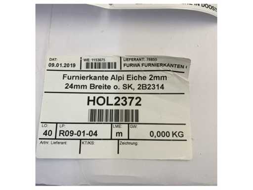 Alpi Oak Veneer edging tape 2mm x 24mm