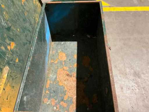 puncture-proof tire, plastic rim; capacity approximately 200 liters; container size 900x500x400 mm; lid; Signs of use
