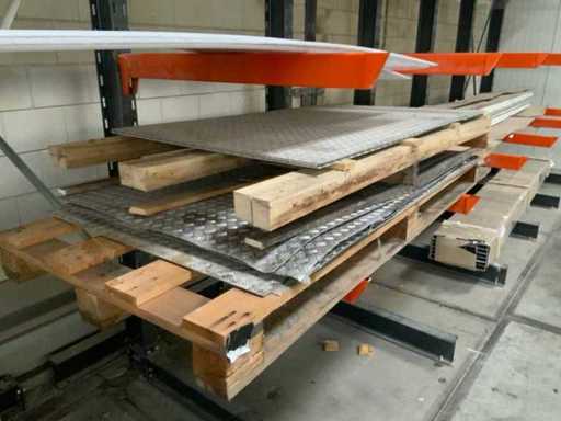 including: 1 package KP 16 aluminum profiles, length: 7000mm, 1 package aluminum U profile, dimensions: 80 x30 x 3 x L 3800mm à 58 pieces, U-profile, dimensions: 80 x 30 x 3 x L 3800mm à 50 pieces, 11 aluminum checker plates,. Includes 3 chipwood records