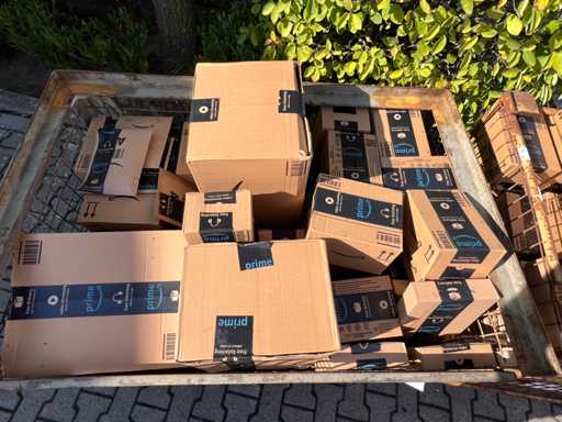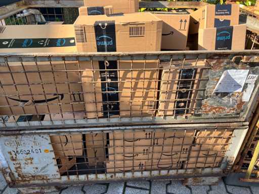 Only here you can get an exclusive lattice box / mesh cage on Euro pallet filled with exactly 50 Amazon boxes in their original packaging - all unopened and directly from the Amazon stock overstock.