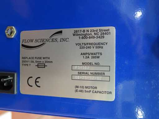 Serial Number: FS58 Filter reference: FS 4251 Air Motion Detector: FS 1600 Overall dimensions (W x D x H): 1300 x 1000 x 1300 mm Usable dimensions (W x D x H): 900 x 850 x 1300 mm Extraction section: 150 mm External connection section: 100 mm Documentation: available (instruction manual) Ref. 1480