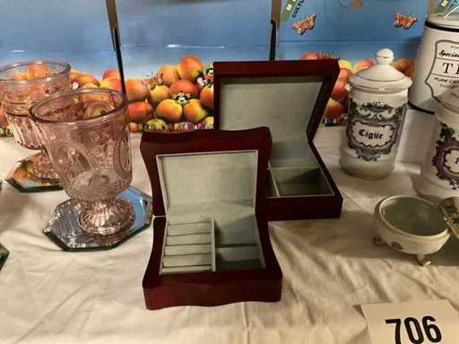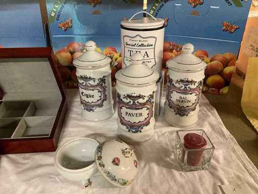 Antique apothecary jars + limoges porcelain + jewel case