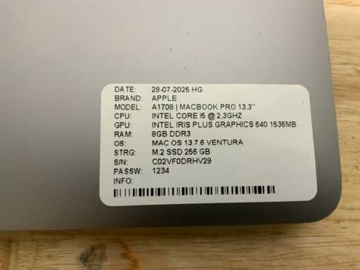 - A1708 MacBook Pro