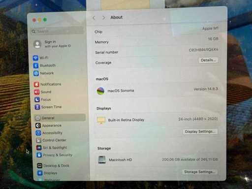 Has been reset and is separate from Apple ID. Includes power supply, but without keyboard and mouse.