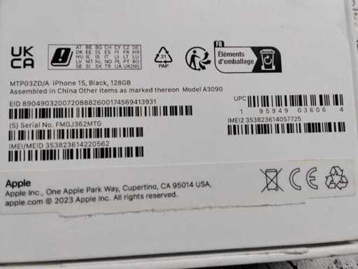 128 Gb memory. Battery 84 % Camera does not work. Selfie camera does. Flashlight does not work. No cracks on the front or back.