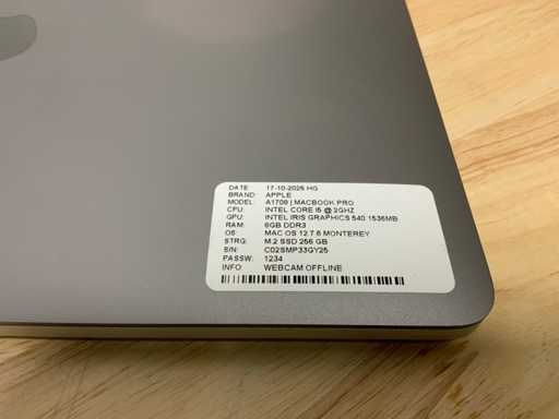 Apple MACBook Pro A1708 Laptop
