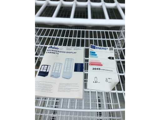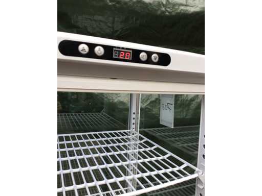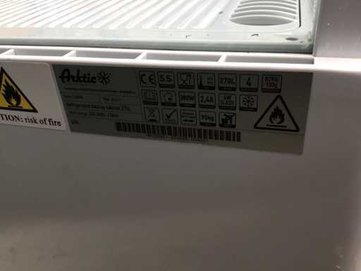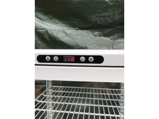 270 l 230V 290W ; 556x526x(h)1913 ; On wheels, 2 of which have brakes. ; damage on door