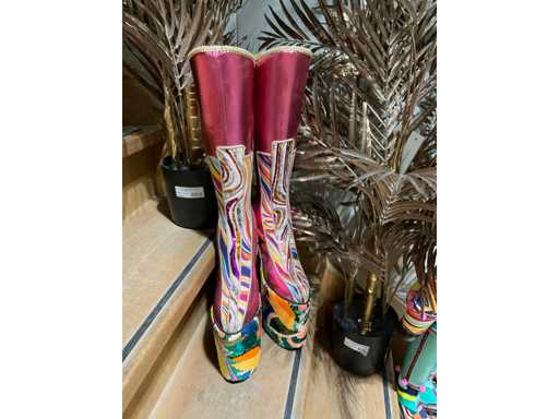 Decoration consisting of 6 pieces of artificial palms, various pairs of boots and 2 nutcrackers