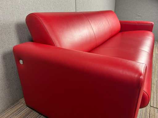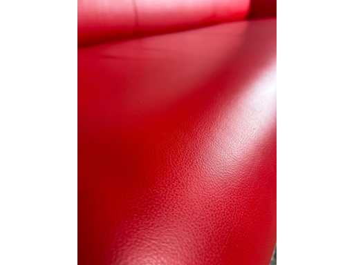 Stylish Artifort designer sofa in red leather. Sleek, timeless design with wide armrests and comfortable seat. Suitable for office environment, waiting room or modern living space.