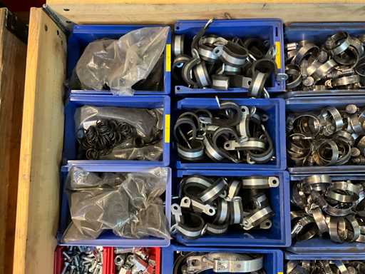 Consisting of 25 plastic containers with mounting material, clamps and nuts