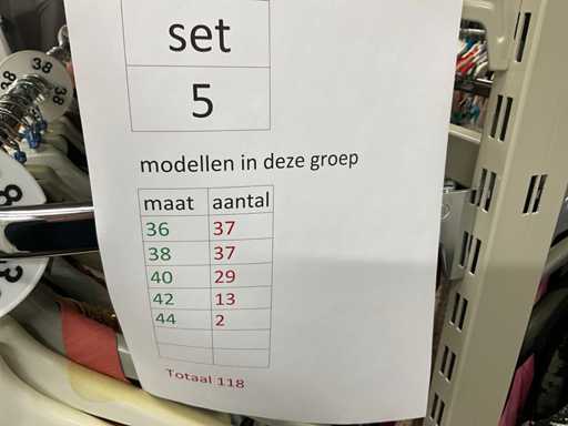 In various sizes from size 36 to 44, distribution: see sheet in terms of numbers per size.