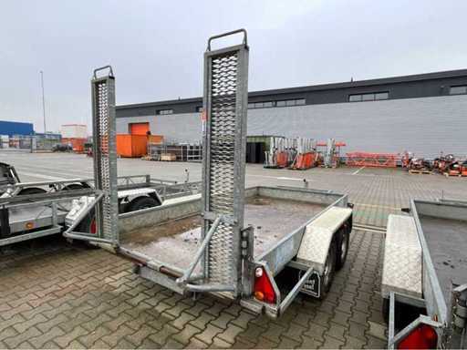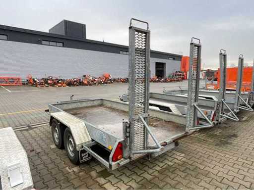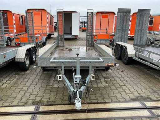 length 5140 mm; width 2300 mm; height 2180 mm; description: galvanized steel frame; fixed ramps; binding eyes; excavator bucket support; jockey wheel; inhibited; (the buyer must provide a valid registration number when transporting by road; a 7 or 9 pin connection plug or adapter with cable (extension cord can be purchased locally for a fee); possibly extra light bar); foreign registration papers; without a certificate of conformity;