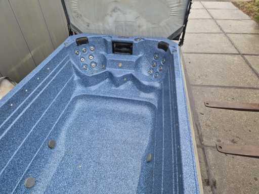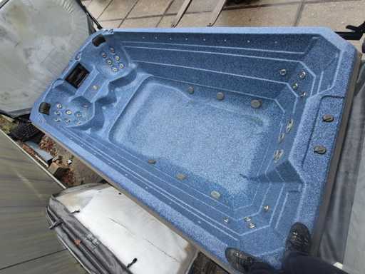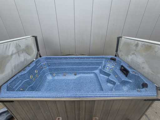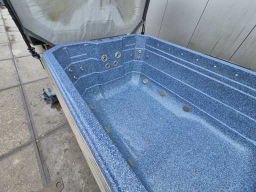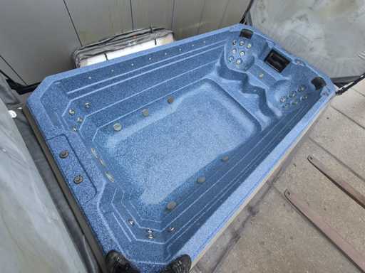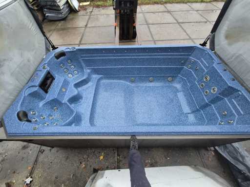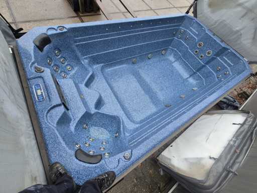 Equipped with 2 seats; 2 standing places with back massage; swim jets to swim against; LED lighting in all colors; automatic filtration system; pillows; plastic casing; covers including cover lifts (Margin, no VAT)