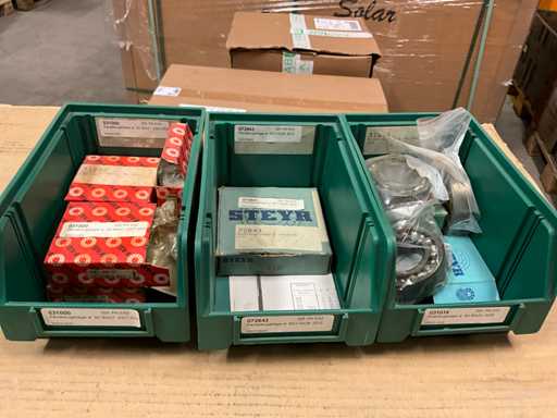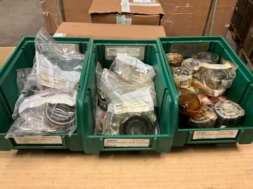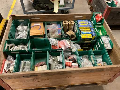 +/- 700 pieces, content 1 pallet with frame, various manufacturers, designs and sizes, in 59 storage boxes, weight estimated approx. 250 kg, quantity and further details see photos,